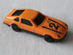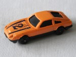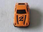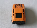 schwarze, nicht durchsichtige Scheiben. Vernietete Kunststoffbodenplatte-Rückleuchten-Stossstangen-Einheit. Auf der Motorhaube schwarze Streifen und die Startnummer Nr. 2. Schwarze 5-Steg-Felgen mit Hartplastikräder. Einfaches Billigmodellauto gleicher Bauart wie Summer Toys |