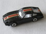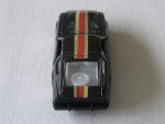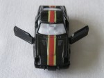 | Massstab | 1:60 |  durchsichtige Scheiben, weisses Interieur. Zu öffnende Türen. Angedeutete Targa-Dächer. Schwarze Frontstossstange, vernietete Kunststoffbodenplatte-Rückleuchten-Stossstangen-Einheit. Entlüftungsgitter auf der Motorhaube und Stossschutzleisten auf den Seiten in Wagenfarbe. Über dem ganzene Auto rot-gelbe Streifen. Chrom-8-Steg-Felgen mit Chrom-Zierring und Hartplastikräder