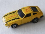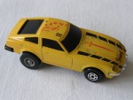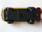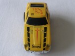 | Massstab | 1:58 |  bläuliche, nicht durchsichtige Scheiben. Chrom-Frontstossstange und Heckblende. Vernietete, mattschwarze Kunststoffbodenplatte-Stossstangen-Einheit. Entlüftungsgitter auf der Motorhaube und Stossschutzleisten auf den Seiten in Wagenfarbe. Auf der Motorhaube schwarze, durchbrochene Streifen und den Aufdruck "Sword", sowie ein rotes Schwert. Auf dem Dach den roten Aufdruck "The Sword und in schwarz die Zahl IV. Grössere Hinterräder mit Gummi-Reifen und Chrom-6-Steg-Felgen vorne, nicht durchbrochen, mit Hartplastikräder und Pull-Back-Antrieb