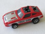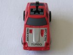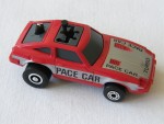 | Massstab | 1:58 |  graue nicht durchsichtige Scheiben und Dach einer 2+2-sitzigen Karosserie. Vernietete mattschwarze Bodenplatte. Naga-Öffnungen auf der Motorhaube und Stossschutzleisten auf den Seiten in Wagenfarbe. Silberne Motorhaube mit schwarzen Aufdrucken "Pace-Car Turbo". Auf den Seiten silberne Streifen und den schwarzen Aufdruck "Pace-Car". Auf dem Dach und der Heckscheibe Wählhebel für die Aktion und ausklappbares Führungsrad in der Bodenplatte. Grössere Hinterräder mit Gummi-Reifen und Chrom-5-Steg-Felgen vorne, nicht durchbrochen, mit 5 Radbolzen und Hartplastikräder. Fahrzeug aus der Matchbox Action Trick-Shifter-Serie mit Abschussrampe