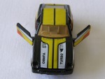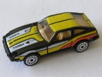 | Massstab | 1:58 |  durchsichtige Scheiben, cremefarbenes 2+2-Interieur. Zu öffnende Türen. Vernietete, mattschwarze Bodenplatte-Stossstangen-Einheit. Angedeutete Targa-Dächer. Naga-Öffnungen auf der Motorhaube und Stossschutzleisten auf den Seiten in Wagenfarbe. Über dem ganzen Auto gelb-weisse Streifen und den schwarzen Aufdruck "Turbo". Auf den Seiten gelb-orange-weisse Streifen mit dem Aufdruck "Turbo". Chrom-12-Doppel-Steg-Felgen mit Hartplastikräder. Fahrzeug aus der Superfast-Lazer-Wheels Serie in der USA Version