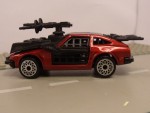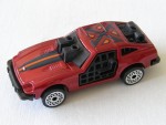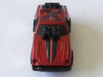 | Massstab | 1:58 |  graue, nicht durchsichtige Scheiben, bei den Seitenfenstern ein Sicherheitsnetz, in der Front- und Heckscheibe Halterungen für die Ausrüstung des Road Blasters. Vernietete, mattschwarze Bodenplatte-Stossstangen-Einheit. Angedeutete Targa-Dächer. Naga-Öffnungen auf der Motorhaube und Stossschutzleisten auf den Seiten in Wagenfarbe. Auf der Motorhaube ein schwarz-oranger Streifen. Auf dem Dach ein schwarzes Kreuz mit orangen Verzierungen. Chrom-12-Doppel-Steg-Felgen mit Hartplastikräder. Fahrzeug als Superfast Road-Blaster-Aktion-Model