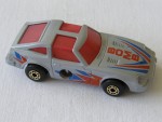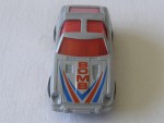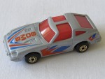 | Massstab | 1:58 |  rote, nicht durchsichtige Scheiben, inklusive Targa-Dächer, einer 2+2 sitzigen Karosserie. Vernietete, farblose Metallbodenplatte mit zu öffnender Klappe und weissem Funktionsauslöser. Naga-Öffnungen auf der Motorhaube und Stossschutzleisten auf den Seiten in Wagenfarbe. Auf der Motorhaube blau-rote Streifen und den roten Aufdruck "BOMB". Auf der linken Seite rot-blaue Muster und auf der rechten Seite rot-blaue Muster sowie eine Aktions-Öffnung. Chrom-5-Steg-Felgen, nicht durchbrochen, mit 5 Radbolzen und Hartplastikräder. Fahrzeug aus der Mega-Blaster Cap-Cars Serie mit Abschussrampe