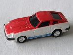 | Massstab | 1:57 |  schwarze nicht durchsichtige Scheiben und Stossstangen. Zweifarbige Karosserie mit blauen Streifen auf den Seiten mit dem weissen Aufdruck "Datsun 280 Z". Im Heck eine runde Öffnung für die Abschussaktion in Form einer Zündkerze. Chrom-5-Steg-Felgen mit Hartplastikräder. Fahrzeug als Werbeartikel der Firma Champion-Zündkerzen, zusammen mit einem Porsche 935-77 Turbo in "Martini-Werbung"