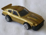 | Massstab | 1:45 |  bläuliche, durchsichtige Scheiben, mit schwarzem Interieur,  Frontstossstange-Spoiler-Einheit, vernietete Bodenplatte und Stossstange-Heckleuchten-Einheit. Entlüftungsgitter auf der Motorhaube, Jalousie als Heckfenster und grosser Turbo-Heckspoiler in Wagenfarbe. Auf der Motorhaube und dem Dach rot-blaue Streifen, das rote "Shell"-Logo und die blau-rote Startnummer 8. Auf der Heckklappe den blauen Aufdruck "280 ZX". Chrom-6-Steg-Felgen, nicht durchbrochen, mit Gummi-Reifen und Pull-Back-Antrieb