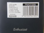 | Massstab | 1:43 |  durchsichtige Scheiben, inklusive Targa-Dächer, silber-schwarzes Interieur, als rechtslenker Turbo-Strassenversion für den Japanischen Markt. Schwarze Scheibenwischer, Stossstangen, Naga-Öffnungen auf der silbernen Motorhaube, Rückspiegel auf den Kotflügeln montiert, Stossschutzleisten auf den Seiten, B-Säule und Tankdeckel. Chrom-Scheibenrahmen und Türgriffe. Kolorierte Lichter. Chrom-4-Steg-Original-Felgen mit Profilgummi-Reifen. Fahrzeug als Resine-Kleinserienprodukt, aus der Handarbeits-Enthusiast-Serie