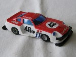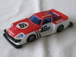 | Massstab | 1:32 |  blaue, nicht durchsichtige Scheiben und Frontscheinwerfer. Überbreite Rennkarosserie. Schwarze Führungsbalken für den Einsatz auf einer batteriebetriebenen Modellauto-Rennbahn vorne und hinten und Stossstangen. Dem vom John Morton BRE-Racing Team eingesetzten SCCA-Rennfahrzeug nachempfunden, mit der legendären Startnummer 46 und Werbeaufdrucken. Kolorierte Rücklichter. Silberne 6-Steg-Felgen mit Weichgummi-Reifen