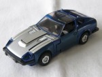 durchsichtige Scheiben, inklusive Targa-Dächer, ohne Interieur, als Transformer mit zweifarbiger Karosserie. Naga-Öffnungen auf der Motorhaube in Wagenfarbe. Zu öffnende Türen. Schwarze Stossstangen. Kolorierte Lichter. Chrom-4-Steg-Felgen mit Gummi-Reifen. Fahrzeug kann als Roboter-Figur umgebaut werden |