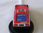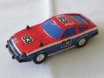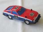 | Massstab | 1:43 |  blaue, nicht duchrsichtige Scheiben. Schwarze Stossstangen und Rückspiegel auf dem Kotflügeln montiert. Auf der Motorhaube, dem Dach und den Seiten ein weiss-schwarzer Aufkleber mit der Startnummer 83 sowie Werbeaufkleber. Auf der Frontscheibe den Aufkleber mit dem Aufdruck "Elektromotive". Das Auto ist dem SCCA-Renner des Teams Elektramotiv, des Fahrers Don Devendorf nachempfunden. Kolorierte Lichter mit Glasabdeckungen auf den Scheinwerfern. Rennfahrzeug inklusive Motor für die Slot-Rennbahn. Chrom-5-Steg-Felgen mit Gummi-Reifen. Fahrzeug ist baugleich wie dasjenige der ARII-Slotrennbahn, hier aber allein