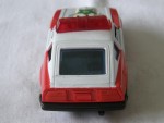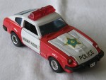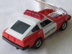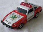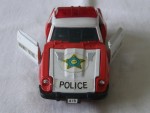 | Massstab | 1:38 |  durchsichtige Scheiben, schwarzes Interieur und Stossstangen. Zu öffende Türen und Motorhaube mit Motorapplikation. Entlüftungsgitter auf der Motorhaube, Stossschutzleisten auf den Seiten und Scheibenwischer in Wagenfarbe. Weisse Dachpartie mit roter Lichtbar, Türen und Motorhaube. Auf der Motorhaube ein blau-gelb-schwarzer Aufkleber mit dem schwarzen Aufdruck "Police". Auf den Seiten ein weiss-schwarzer Aufkleber mit dem Aufdruck "Highway-Patrol". Kolorierte Lichter. Chrom-5-Steg-Tiefbett-Felgen mit Gummi-Reifen und Pull-Back-Antrieb. Fahrzeug aus der Jet-Machines-Mini-Power-Serie