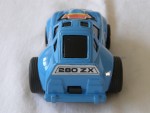 | Massstab | 1:36 |  schwarze, nicht durchsichtige Scheiben, inklusive Targa-Dächer, Gummipuffer auf der Frontstossstange und Bodengruppe. Verzerrte und überbreite Die-Cast-Karosserie mit wenigen Details. Auf der Motorhaube ein rot-schwarz-gelb-weisser Aufkleber und die weiss-schwarze Startnummer 03. Auf den Seiten ein grau-schwarzer Aufkleber mit dem Aufdruck "Turbo". Am Heck weitere Aufkleber als Rücklichter (fehlen) und grau-schwarzer, mit Aufdruck "280 ZX". Chrom-8-Doppel-Steg-Felgen mit Radbolzen und Gummi-Reifen, mit Schwungrad-Antrieb. Fahrzeug aus Bulgarischer Produktion