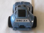 | Massstab | 1:36 |  schwarze, nicht durchsichtige Scheiben, inklusive Targa-Dächer, Gummipuffer auf der Frontstossstange und Bodengruppe. Verzerrte und überbreite Die-Cast-Karosserie mit wenigen Details. Am Heck ein grau-schwarzer Aufkleber mit dem Aufdruck "280 ZX". Andere Aufkleber fehlen. Chrom-8-Doppel-Steg-Felgen mit Radbolzen und Gummi-Reifen, mit Schwungrad-Antrieb. Fahrzeug aus Bulgarischer Produktion. Ziemlich bespielt aber komplett bis auf viele Aufkleber