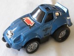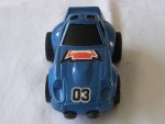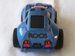 | Massstab | 1:36 |  schwarze, nicht durchsichtige Scheiben, inklusive Targa-Dächer, Gummipuffer auf der Frontstossstange und Bodengruppe. Verzerrte und überbreite Die-Cast-Karosserie mit wenigen Details. Auf der Motorhaube ein rot-schwarz-gelb-weisser Aufkleber und die weiss-schwarze Startnummer 03. Auf den Seiten ein schwarzer Aufkleber mit dem Aufdruck "Roos" und einem Käguruh. Am Heck weitere Aufkleber als Rücklichter und schwarzer mit dem Aufdruck "Roos". Chrom-8-Doppel-Steg-Felgen mit Radbolzen und Gummi-Reifen, mit Schwungrad-Antrieb. Fahrzeug der Bulgarischen Firma, in Taiwan produziert