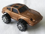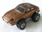 schwarze, nicht durchsichtige Scheiben inklusive Targa-Dächer, mit Brandschaden in der Frontscheibe. Schwarze, verschraubte Bodenplatte mit Batteriefach und An-Aus-Schalter für den batteriebetriebenen Allradantrieb. Beleuchtete Frontscheinwerfer. Chrom-4-Steg-Felgen mit Big-Foot-Gummi-Zahn-Reifen |