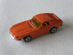 gelbliche, durchsichtige Frontscheibe und verchromtes Interieur. Hintere seitliche Scheiben und Heckfenster verschlossen. Chrom-Bodenplatte ist auch gleichzeitig die Stossstangen- Kühlergrill- Rückleuchteneinheit. Chrom-5-Stegfelgen mit Hartplastikräder. Sehr einfaches Kinderspielzeugauto |