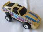 | Massstab | 1:35 |  schwarze, nicht durchsichtige Scheiben, inklusive Targa-Dächer und schwarze Jalousie als Heckscheibe. Entlüftungsgitter auf der Motorhaube, Stossschutzleisten auf den Seite und Stossstangen in Wagenfarbe. Auf der Motorhaube blau-rot-weisse Streifenaufkleber mit dem Aufdruck "Good-Year" und die blau-weisse Startnummer 531. Auf den Seiten rot-blau-weisse Streifenaufkleber und die blau-weisse Startnummer 531. Weisse 6 Doppel-Steg-Felgen mit Gummi-Reifen und Pump-Antrieb