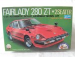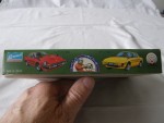 ungebauter, einfacher, kompletter Plastik-Bausatz mit Bauanleitung im Deckel, in Original-Karton und teils in Plastik-Folie eingeschweisst. Kann mit dem vorhandenen, Aufzug-Motor gebaut werden und zwar als Rechtslenker-Strassen-Fahrzeug für den Japanischen Markt |