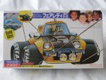 ungebauter, einfacher, kompletter Plastik-Bausatz mit Bauanleitung, in Original-Karton und in Plastik-Folie eingeschweisst. Kann als Fantasie-Auto mit verzerrter Karosserie übergrossen Heckrädern und Zusatzscheinwerfern und Pull-Back-Motor gebaut werden |
