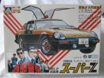 ungebauter, kompletter Plastik-Bausatz mit Bauanleitung, in Original-Karton und teils in Plastik-Folie eingeschweisst. Kann als Filmauto aus Japanischer Krimi-Serie, als Seibu Kaisatsus Super Z, mit Flügeltüren und 4-läufigen Maschinen-Pistolen auf der Motorhaube, gebaut werden |