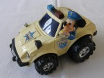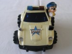 | Massstab | 1:30 |  blaue, nicht durchsichtige Scheiben. Verzerrte Karosserie. Schwarze Stossstangen und auf dem linken Kotflügel ein Lautsprecher. Chrom Scheinwerfer, Rückleuchten und Suchscheinwerfer auf dem rechten Kotflügel. Einsatzfahrzeug der Polizei, mit Figur die aus dem linken Fenster schaut und wippender blau-roter Lichtbar auf dem Dach sowie Hoheitszeichen auf der Motorhaube und den Seiten. Übergrosse Chrom-5-Steg-Felgen im Fuchs-Design und Hartplastikräder, mit Schwungrad-Antrieb. Fahrzeug mit Copyright von Walt-Disney Production