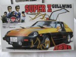ungebauter, kompletter Plastik-Bausatz mit Bauanleitung, in Original-Karton und in Plastik-Folie eingeschweisst. Kann als Filmauto aus der Japanischen Krimi-Serie, als Seibu Kaisatsus Super Z, mit Flügeltüren und Maschinen-Pistolen auf der Motorhaube, gebaut werden. Zum Bausatz gehört kein Motor oder Farben |