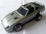 schwarze, nicht durchsichtige Scheiben, inklusive Targa-Dächer, Entlüftungsgitter auf der Motorhaube und Jalousie als Heckscheibe. Chrom-5-Steg-Felgen als Killerwheels, mit Hartplastikräder auf der Vorderachse und Profilgummi-Reifen auf der Hinterachse mit Pump-Antrieb |