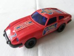 | Massstab | 1:22 |  blaue, nicht durchsichtige Scheiben und Scheinwerfer. Schwarze Stossstange vorne und hinten Stossstange-Rückleuchten-Einheit. Entlüftungsgitter auf der Motorhaube in Wagenfarbe. Auf der Motorhaube und dem Dach rot-blau-gelbe Aufkleber mit den Aufdrucken "280 Z". Auf den Seiten blau-rot-gelbe Aufkleber mit dem Aufdruck "Nissan Fairlady Z 280". Schwarze 5-Steg-Felgen mit Hartplastikräder und Pull-Back-Antrieb. Einfaches Kinderspielzeug