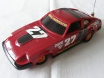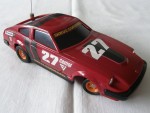 | Massstab | 1:20 |  schwarze, nicht durchsichtige Scheiben und Stossstangen. Chromscheinwerfer. Entlüftungsgitter auf der Motorhaube und Stossschutzleisten auf den Seiten in Wagenfarbe. Auf der Motorhaube ein schwarz-weisser Aufkleber mit der Startnummer 27. Auf der Frontscheibe ein rot-gelber Aufkleber mit dem Aufdruck "Drive Command". Auf den Seiten schwarze Streifen-Aufkleber sowie die weisse Startnummer 27 und Werbeaufkleber. Kolorierte Rücklichter. Batteriebetriebenes Funkfernsteuerauto in der 29.7 MhZ Konfiguration, mit Antenne hinten links. Lenkbare, orange 5-Steg-Felgen mit Gummi-Reifen. Baugleiches Fahrzeug wie Asahi