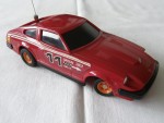| Massstab | 1:20 |  schwarze, nicht durchsichtige Scheiben und Stossstangen. Chromscheinwerfer. Entlüftungsgitter auf der Motorhaube und Stossschutzleisten auf den Seiten in Wagenfarbe. Aufkleber auf der Motorhaube und dem Dach fehlen. Auf den Seiten ein weiss-schwarz-roter Aufkleber mit dem Aufdruck "Datsun 280 Z" und die schwarz-weisse Startnummer 11. Kolorierte Rücklichter. Batteriebetriebenes Funkfernsteuerauto in der 29.7 MhZ Konfiguration, mit Antenne hinten links. Lenkbare, orange 5-Steg-Felgen mit Gummi-Reifen. Baugleiches Fahrzeug wie Mattel