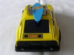| Massstab | 1:20 |  blaue, nicht durchsichtige Scheiben. Schwarze Entlüftungsgitter auf der Motorhaube und Stossstangen-Heckleuchten-Einheit. Chrom Scheinwerfer und Dachgepäckträger mit blauem Surfbrett. Auf den Seiten und der Heckklappe rot-orange-schwarz-gelb-weisse Streifen-Kleber mit dem Aufdruck "Turbo". Weisse Scheibenräder mit schwarzen Profilgummi-Reifen und Schwungrad-Antrieb
