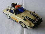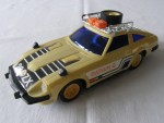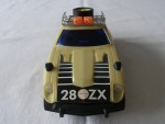 | Massstab | 1:19 |  blaue, nicht durchsichtige Scheiben. Schwarze Stossstangen, Rückspiegel auf den Kotflügeln montiert und verschraubte Bodenplatte. Entlüftungsgitter auf der Motorhaube und Stossschutzleisten auf den Seiten in Wagenfarbe. Auf der Motorhaube ein schwarz-weisser Aufkleber mit dem Aufdruck "280 ZX". Auf den Seiten ein schwarz-gelb-weiss-blau-roter Aufkleber, mit dem roten Aufdruck "Datsun". Auf dem Dach ein Chrom-Dackgepäckträger mit Rally-Untensilien sowie einem Reserverad. Kolorierte Lichter. Batteriebetriebener Anstossmotor. Weisse 6-Steg-Felgen mit Hartplastikräder. Einfaches Plastikmodellauto Einfaches Plastikmodellauto mit leicht vergilbter Karosserie aber komplett