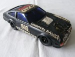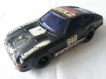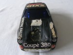| Massstab | 1:19 |  blaue, nicht durchsichtige Scheiben. Schwarze Heckstossstange, vorne fehlt, wie auch die Rückspiegel auf den Kotflügeln montiert. Entlüftungsgitter auf der Motorhaube und Stossschutzleisten auf den Seiten in Wagenfarbe. Das Plastikmodellauto wurde individuell umgestaltet und mit Klebern versehen, die aber nicht zum Auto passen. Kolorierte Lichter. Schwarze 6-Steg-Felgen mit Hartplastikräder und Schwungrad-Antrieb