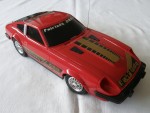 | Massstab | 1:14 |  schwarze, nicht durchsichtige Scheiben, Stossstangen, Entlüftungsgitter auf der Motorhaube und Jalousie als Heckfenster. Verchromte B-Säule und Antenne links vor der Frontscheibe. Auf der Motorhaube gold-schwarze Streifen-Aufkleber mit dem Aufdruck "Fairlady". Auf der Frontscheibe ein weisser Aufkleber mit dem Aufdruck "Fairlady 280 Z". Auf den Seiten ein gold-schwarzer Aufkleber mit dem Aufdruck "Fairlady Z 280. Auf dem Dach ein gold-schwarzer Aufkleber mit dem Aufdruck "Fairlady". Batteriebetriebenes Funk-Fernsteuer-Modellauto. Kolorierte Lichter. Lenkbare Chrom-16-Steg-Felgen mit Profilgummi-Reifen