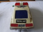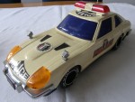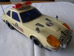 Einsatzfahrzeug der Highway Patrol mit roter Lichtbar auf dem Dach und Hoheitszeichen auf dem ganzen Auto. Auf der Heckklappe den schwarz-weissen Aufdruck "Fairlady 280 Z" und Lautsprecher für Geräusche. Hinten rechts die Antenne mit roter Leuchte auf der Spitze. Kolorierte Lichter mit orangen Abdeckungen auf den Scheinwerfern. Batteriebetriebener Anstossmotor. Schwarze 4-Steg-Felgen mit Hartplastikräder