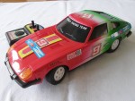 | Massstab | 1:14 |  schwarze, nicht durchsichtige Scheiben und Stossstangen. Entlüftungsgitter auf der Motorhaube in Wagenfarbe. Dreifarbige Kunststoffkarosserie als batteriebetriebenes Kabelfernsteuer-Auto. Auf  der Motorhaube ein gelb-rot-weisser Streifen-Aufkleber mit der Startnummer 9 sowie ein blau-weisser Queraufkleber mit dem Aufdruck "Fairlady Z. Auf der Frontscheibe ein schwarz-weisser Aufkleber mit dem Aufdruck "World-Racing-Team". Auf den Seiten und dem Dach die rot-weisse Startnummer 9 sowie Werbeaufkleber. Kolorierte Lichter mit orangen Abdeckungen auf den Scheinwerfern. Weisse, lenkbare 5-Loch-Felgen mit Profilgummi-Reifen