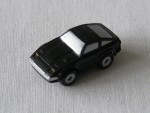 silberne, nicht durchsichtige Scheiben und Stossstangen mit angedeuteten Targa-Dächer in Wagenfarbe. Kolorierte Lichter. Silberne 5-Steg-Felgen mit Hartplastikrädern drehbar |