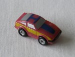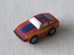silberne, nicht durchsichtige Scheiben, angedeutete Targa-Dächer in Wagenfarbe. Schwarze Stossstangen. Auf der Motorhaube und dem Dach, blauer Streifen. Auf den Seiten ein gelber Streifen. Kolorierte Lichter. Silberne 5-Steg-Felgen mit Hartplastikrädern drehbar |
