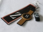 silberne, nicht durchsichtige Scheiben inklusive Targa-Dächer. Rückspiegel in Wagenfarbe an der A-Säule angebracht. Kolorierte Lichter. Silberne Felgen mit drehbaren Hartplastikrädern. Fahrzeug aus dem Fairlady Z-Set als Schlüsselanhänger oder Anhänger für ein Handy |