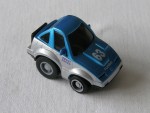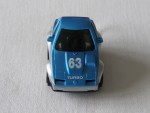 | Massstab | 1:87 |  schwarze, nicht durchsichtige Scheiben und unbedruckte Heckplatte. Rückspiegel in Wagenfarbe an der A-Säule angebracht. Auf der Motorhaube die weisse Startnummer 63, sowie den Aufdruck "Turbo". Auf den Seiten den schwarzen Aufdruck "Penny Racer". Graue 6-Steg-Felgen mit Gummi-Reifen und Pull-Back-Antrieb. Fahrzeug aus der Matchbox Penny-Racer Serie