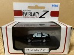 hellgraue, nicht durchsichtige Scheiben, inklusive Targa-Dächer und Bodengruppe bei Zweifarbenlackierung. Rückspiegel in Wagenfarbe an der A-Säule angebracht. Kolorierte Lichter. Silberne Original-LM-Felgen mit schwarzen, feststehenden Rädern. Fahrzeug aus der SEGA-Fairlady Z Serie auf schwarzem Sockel montiert, ohne bewegliche Teile |
