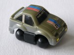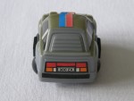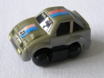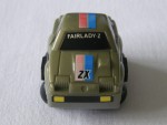 | Massstab | 1:68 |  schwarze Aufkleber als Scheiben mit weissem Aufdruck "Fairlady Z" auf der Frontscheibe und Jalousie in Wagenfarbe als Heckfenster. Verzerrte Karosserie. Über dem ganzen Auto ein blau-rot-schwarzer Aufkleber mit dem Aufdruck "ZX" auf der Motorhaube. Schwarzer Aufkleber als Stossstangen. Kolorierte Rücklichter als Aufkleber mit dem schwarzen Aufdruck "300 ZX". Einfaches Plastikspielzeug mit schwarzen Kugelräder und Pull-Back-Antrieb