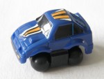 schwarze Aufkleber als Scheiben und Jalousie in Wagenfarbe als Heckfenster. Verzerrte Karosserie. Auf der Motorhaube und dem Dach weiss-schwarz-orange Keilaufkleber. Kolorierte Rücklichter als Aufkleber. Einfaches Plastikspielzeug mit schwarzen Kugelräder und Pull-Back-Antrieb. Baugleich wie Shinsei-Kugelrad |
