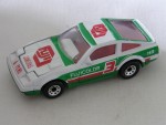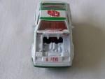 | Massstab | 1:58 |  durchsichtige Scheiben, angedeutete Targa-Dächer und rotes Linkslenker-Interieur. Zu öffnende Motorhaube mit Motorapplikation. Rückspiegel in Wagenfarbe an der A-Säule angebracht. Grüne, vernietete Metallbodengruppe. Auf der Motorhaube, dem Dach und der Heckklappe ein grüner Streifen mit dem roten Aufdruck "Fuji Cameras & Films" sowie das rote Firmenlogo auf dem Dach. Auf den Seiten ein grün-roter Streifen mit der weiss-roten Aufschrift "Fujicolor HR" und die Startnummer 3. Chrom 8-Loch-Felgen mit Hartplastikräder. Fahrzeug als Werbemodell von Fuji-Film & Camera in der blauen Kartonbox