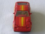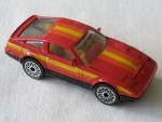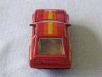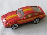 | Massstab | 1:58 |  durchsichtige Scheiben, angedeutete Targa-Dächer und cremefarbenes Linkslenker-Interieur. Zu öffnende Motorhaube mit Motorapplikation. Rückspiegel in Wagenfarbe an der A-Säule angebracht. Schwarze, vernietete Metallbodengruppe. Auf dem ganzen Auto orange-gelbe Streifen. Chrom-12-Steg-Felgen im BBS-Design mit Hartplastikräder. Fahrzeug aus der US-Superfast-Lazer Serie