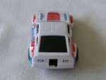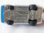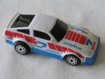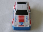 | Massstab | 1:58 |  schwarze, nicht durchsichtige Scheiben und angedeutete Targa-Dächer. Kotflügelverbreiterungen und Rückspiegel an der A-Säule angebracht in Wagenfarbe. Blauer Schweller und Frontstossstange. Kunststoffkarosserie und verschraubte, farblose Metallbodenplatte. Auf der Motorhaube ein roter Streifen mit der rot-blauen Aufschrift "Good Year Nissan" sowie die blaue Startnummer 7. Auf den Seiten ein roter Streifen, ein blau-schwarzer Aufdruck "Good Year Moroso" und die blaue Startnummer 7. Im Heck eine 4-eckige Öffnung für den Abstossschlüssel als Aktion. Chrom-8-Steg-Felgen mit Gummi-Reifen. Fahrzeug aus der Burning-Key Car Serie