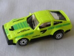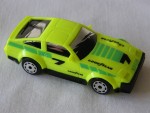 | Massstab | 1:58 |  chrom-schwarze, nicht durchsichtige Scheiben und angedeutete Targa-Dächer. Kotflügelverbreiterungen und Rückspiegel an der A-Säule angebracht in Wagenfarbe. Schwarzer Schweller und Frontstossstange. Kunststoffkarosserie und verschraubte, farblose Metallbodenplatte. Auf der Motorhaube ein grüner Streifen mit der grün-schwarzen Aufschrift "Good Year Nissan" sowie die schwarze Startnummer 7. Auf den Seiten ein grüner Streifen, ein schwarzer Aufdruck "Good Year" und die schwarze Startnummer 7. Im Heck eine 4-eckige Öffnung für den Abstossschlüssel als Aktion. Chrom-8-Steg-Felgen mit Gummi-Reifen. Fahrzeug aus der Burning-Key Car Serie als "Thunder"
