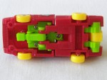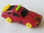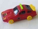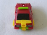 | Massstab | 1:55 |  schwarze, nicht durchsichtige Scheiben und Frontstossstange. Gelber Heckspoiler. Auf der Motorhaube ein schwarz-rot-gelber Aufdruck eines Adlers. Auf den Seiten rot-weiss-schwarzer 6-zakiger Sternaufdruck. Auf dem Dach eine hellgrüne Lichtbar. Kolorierte Lichter. Gelbe Hartplastikräder. Kann als Roboter geformt werden