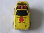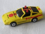 | Massstab | 1:62 |  schwarze, nicht durchsichtige Scheiben, inklusive Targa-Dächer und vernietete, verchromte Kunststoff-Bodenplatte. Ohne Interieur. Rückspiegel in Wagenfarbe an der A-Säule angebraucht. Auf dem ganzen Auto rote Streifen und Kreuz mit der schwarzen Aufschrift "Emergency Squad 322". Auf dem Dach 2 rote Drehlichter. Solange die Batterie Kraft hatte, leuchteten diese Drehlicher auf Druck. Chrom-8-Steg-Felgen mit Hartplastikräder