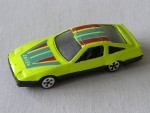 schwarze, nicht durchsichtige Scheiben, Interieur und angedeuteten Targa-Dächern. Schwarze Kunststoffbodenplatte Stossstangen-Einheit. Auf der Motorhaube und dem Dach blau-rote Streifen mit dem gelben Aufdruck "Smash" auf der Motorhaube. Chrom-5-Steg-Felgen mit Hartplastikräder. Sehr einfaches Kinderspielzeug als Die-Cast |