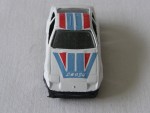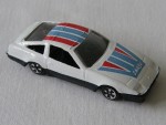 schwarze, nicht durchsichtige Scheiben, Interieur und angedeuteten Targa-Dächern. Schwarze Kunststoffbodenplatte Stossstangen-Einheit. Auf der Motorhaube und dem Dach blau-rote Streifen mit dem weiss Aufdruck "Smash" auf der Motorhaube. Chrom-5-Steg-Felgen mit Hartplastikräder. Sehr einfaches Kinderspielzeug als Die-Cast |